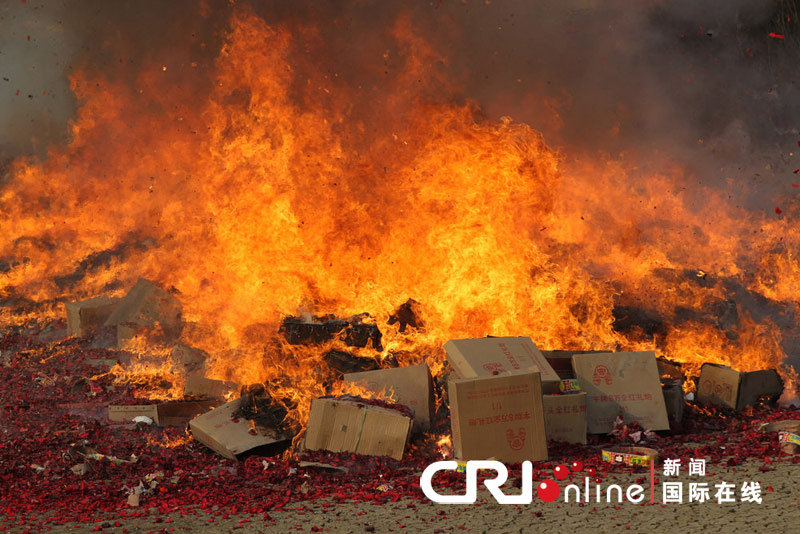 2011年1月25日,青島市公安局對近期查獲的3000余箱非法煙花爆竹進(jìn)行集中銷毀。來源:CFP .. 點(diǎn)擊:3477 |