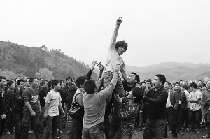 | 簡文:圖為小伙子搶到“花炮”后的激動(dòng)場景。