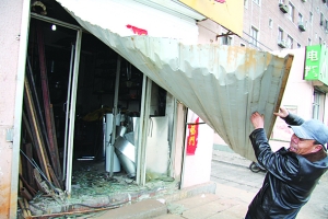 | 簡文:店鋪卷簾門變形,門玻璃全部損毀 本報記者 許江平攝影