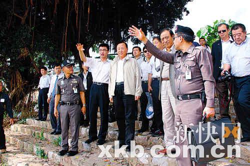 簡(jiǎn)文:來(lái)源:西部網(wǎng) 26日,中國(guó)公安代表團(tuán)查看湄公河襲擊事件案發(fā)現(xiàn)場(chǎng),聽(tīng)取泰國(guó)清盛縣警方對(duì)案情的介紹。新華社發(fā) 湄公河中國(guó)船員遇害慘案.. 點(diǎn)擊:1044