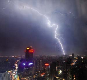 南京夜空頻現(xiàn)“彩色閃電” (組圖)  時(shí)間:2010年8月26日