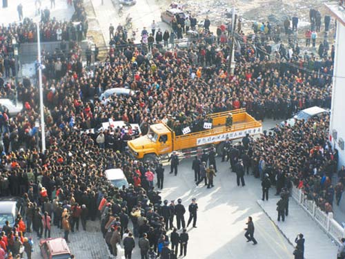 陜西府谷押解3殺人嫌犯游街引數(shù)萬人圍觀(圖)  時(shí)間:2008年11月26日