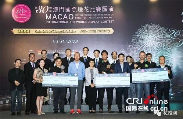 第30屆澳門國際煙花比賽匯演頒獎典禮。澳門新聞局供圖