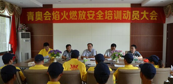 動(dòng)員會(huì)上,湯顯華局長向象形精品出口煙花廠授予青奧會(huì)焰火燃放旗幟。