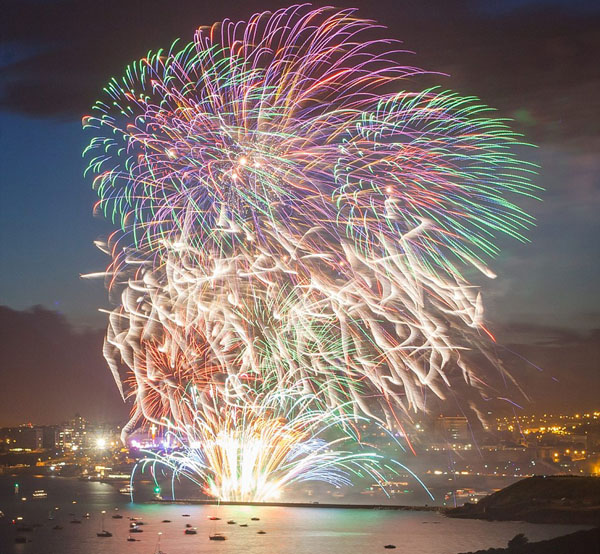 錦標(biāo)賽期間,普利茅斯市內(nèi)包括普利茅斯高地(Plymouth Hoe )和斯米頓塔(Smeaton's Tower)在內(nèi)的一些著名標(biāo)志性景觀被英國六家煙花企業(yè)的絢爛煙花點(diǎn)亮,形狀各異的圖案在評委和觀眾的眼前綻放,充滿了想象力和美感,真可謂美不勝收。