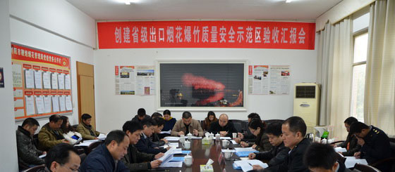 12月20日,由湖南省出入境檢驗(yàn)檢疫局專家組成的驗(yàn)收組來瀏對我市創(chuàng)建省級出口煙花爆竹質(zhì)量安全示范區(qū)進(jìn)行驗(yàn)收。驗(yàn)收組采取聽取匯報(bào)、查閱資料、到隨機(jī)抽取企業(yè)現(xiàn)場驗(yàn)證等方式進(jìn)行驗(yàn)收。經(jīng)過驗(yàn)收組綜合評審,對我市創(chuàng)建省級出口煙花爆竹質(zhì)量安全示范區(qū)各項(xiàng)工作給予好評,驗(yàn)收工作圓滿結(jié)束。