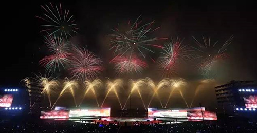 以“PLENUS”為主題的焰火秀分為四個篇章《節(jié)奏之舞》《風(fēng)情之舞》《狂野之舞》《激情之舞》四個篇章。