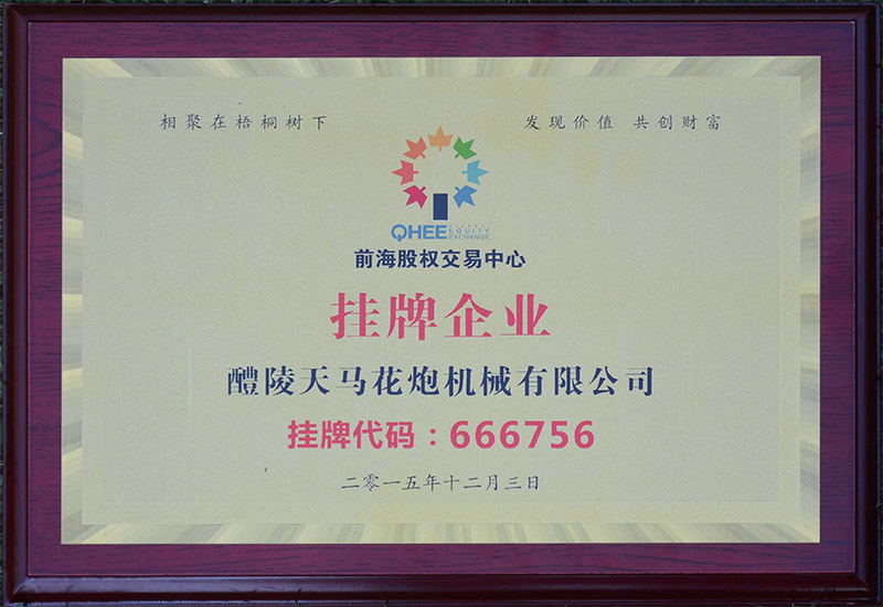 12月18號上午,醴陵天馬花炮機械有限公司經(jīng)過2個多月的努力,在醴陵市市政府和中國花炮協(xié)會的相關(guān)領(lǐng)導(dǎo)見證下,正式在深圳證劵交易所成功掛牌上市新四版,標志花炮機械企業(yè)從此開始走向金融市場。