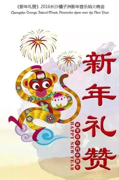 2016年2月7日(除夕夜)晚8點30分,“橘洲浪漫,璀璨星城”長沙橘子洲燃放主題音樂焰火《新年禮贊》迎新春,為猴年獻福。本場焰火晚會是第226場,共分三個篇章:第一篇章《春潮涌動醉神州》、第二篇章《花開盛世耀中華》、第三篇章《攜手共筑新輝煌》,燃放時間20分鐘。除夕夜焰火晚會倒計時,新年第二場煙花約嗎?注:以文章含有附件