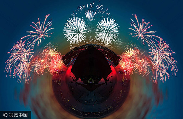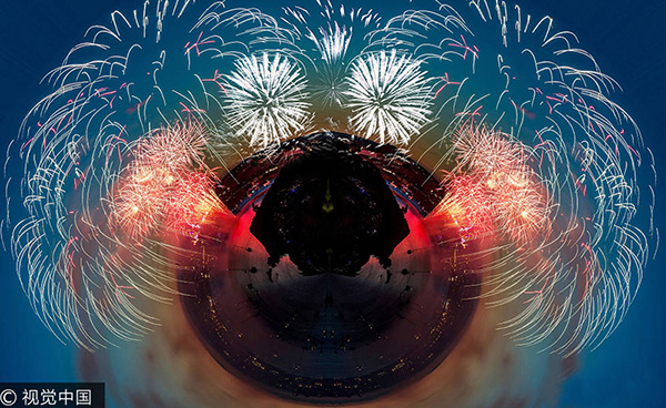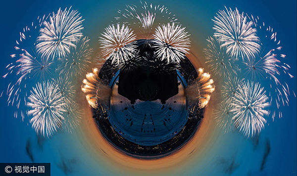 當(dāng)?shù)貢r(shí)間2017年8月9日,英國普利茅斯,英國攝影師John Baker通過極坐標(biāo)(Polar Coordinates)技術(shù)將拍攝到的煙花照片轉(zhuǎn)變成一組奇幻大片,讓原先的平面圖像變得立體,更具視覺效果。這些煙花照片的原圖拍自于本月9日舉行的英國煙花錦標(biāo)賽。攝影師John Baker在拍取照片后,通過后期整合,將這些照片變成了炫酷的全景圖。