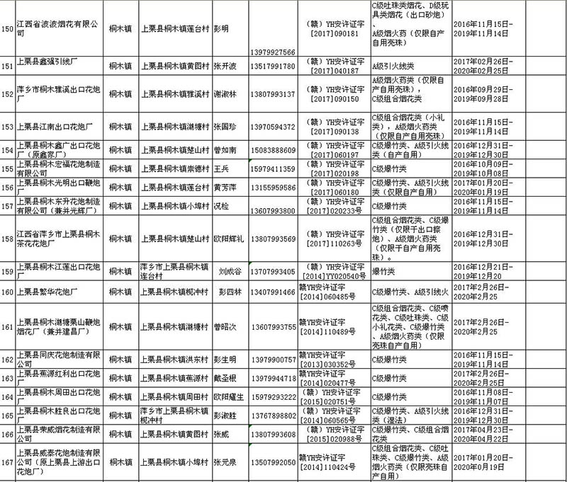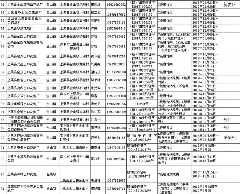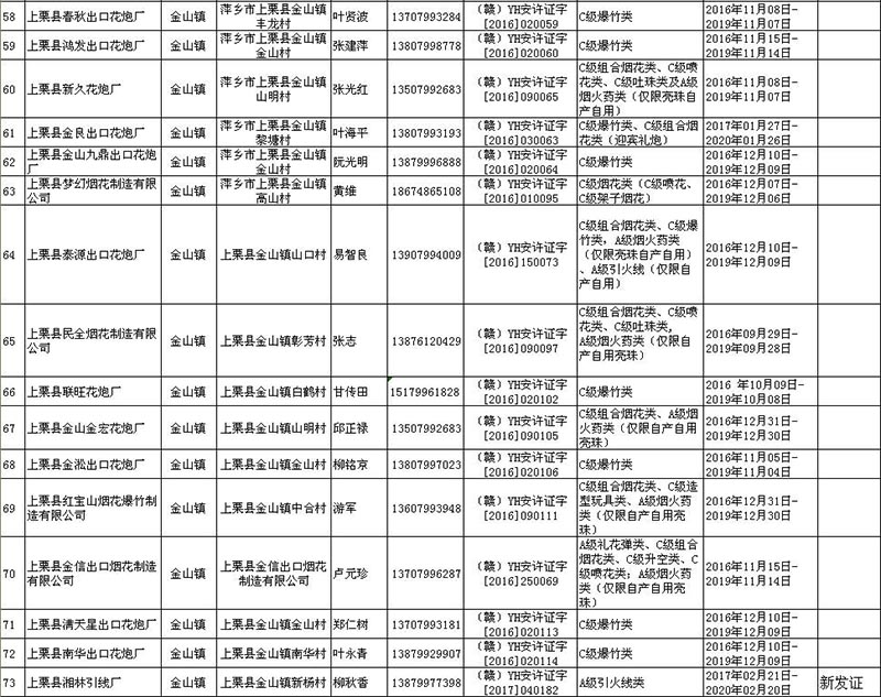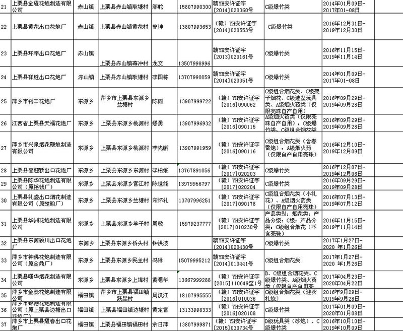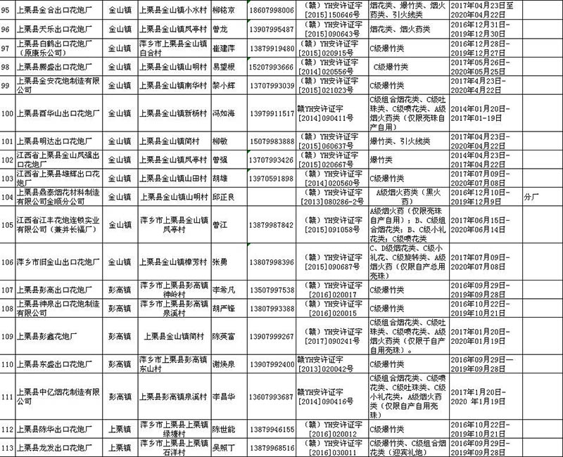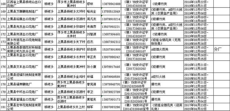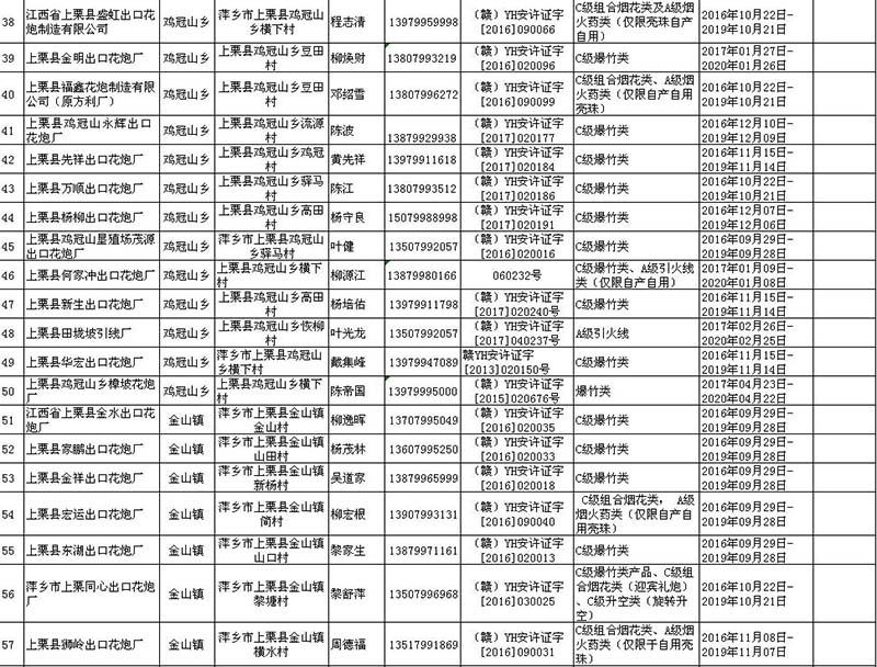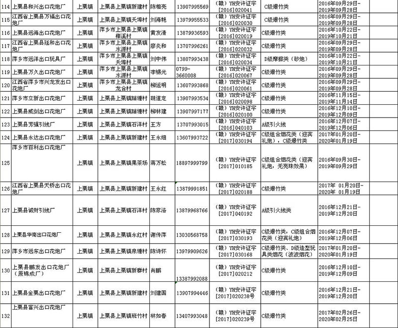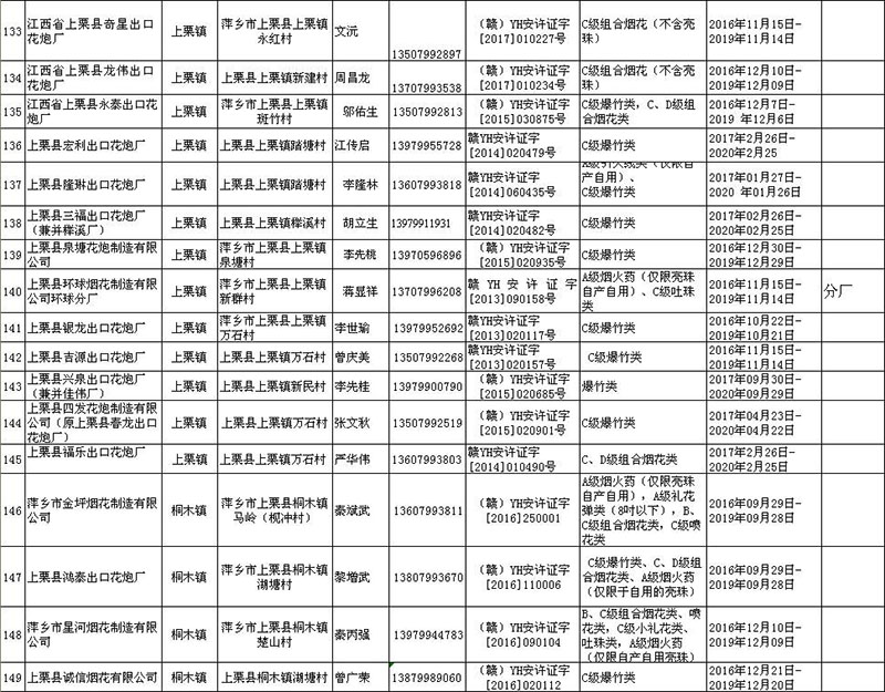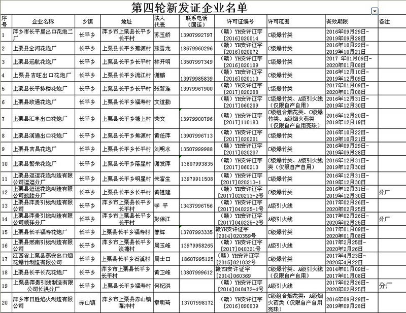 上栗縣花炮企業(yè)第四輪新發(fā)證企業(yè)名單
