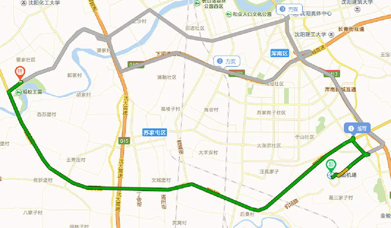 3)蘇家屯南收費站(G15)至四環(huán)路,行駛12.1公里右轉(zhuǎn)進(jìn)入大堤路,行駛1.4公里到達(dá)沈陽東方銀座鉑爾曼酒店。