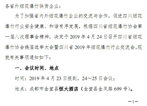 上一篇 ↑[貴州省2019年煙花爆竹行業(yè)外省供貨單位備案通知] 下一篇 ↓[赤峰晟典煙花爆竹經(jīng)營有限公司第三屆訂貨會大型煙花燃放晚會]