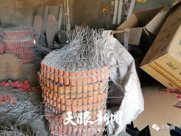 生產(chǎn)車間存放著大量爆竹成品。