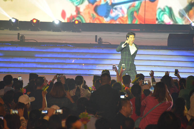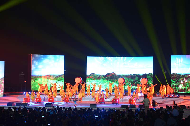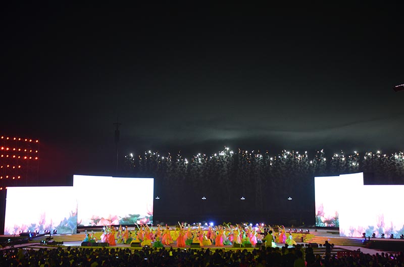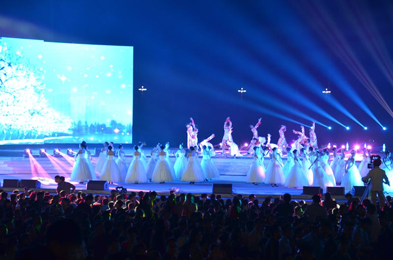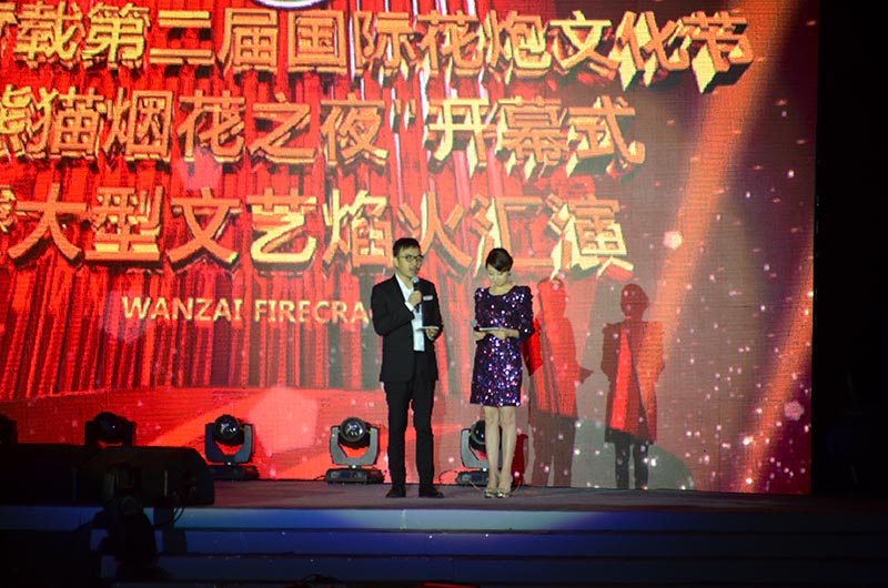 2014年10月17日,江西省宜春市,中國·萬載第二屆國際花炮文化節(jié)開幕式暨大型文藝焰火匯演在煙花燃放國際賽事中心舉行。遠(yuǎn)道而來的的王力宏、信樂團(tuán)、米娜等明星登臺獻(xiàn)唱,點(diǎn)燃萬余名觀眾的,而一束束綻放五彩繽紛的煙花更是將開幕式推向高潮。據(jù)介紹,此次花炮文化節(jié)所燃放的煙花將經(jīng)過六道檢測程序,并選用了無硫、少煙、無重金屬的高環(huán)保、高科技煙花。