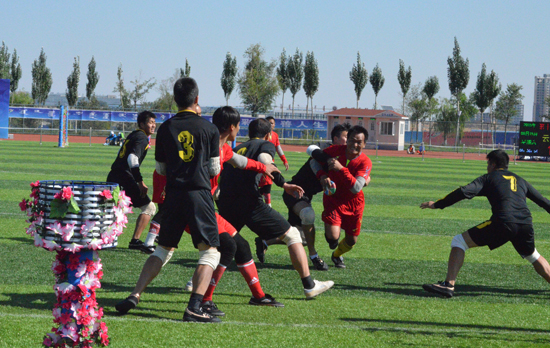 8月15日上午,云南队(红色队衣)和广东队(黑色队衣)比赛现场。