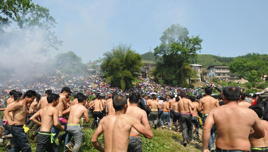 与侗族花炮相比,富川瑶族自治县的花炮可以用一个“大”字来形容:一柱大花炮高..